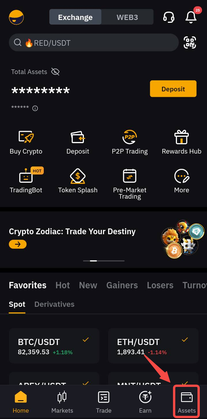 第 1 步:点击 Bybit 主页右下角的资产。