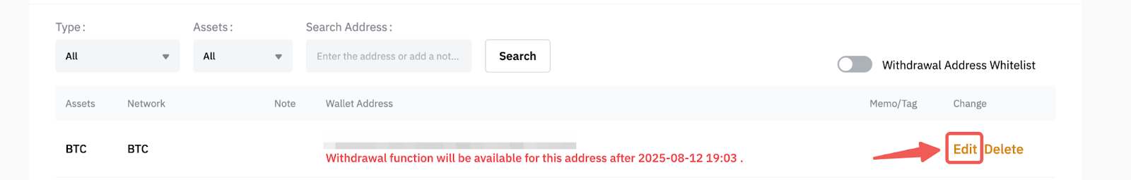有关如何管理提币地址簿的更多信息,请参阅本文。